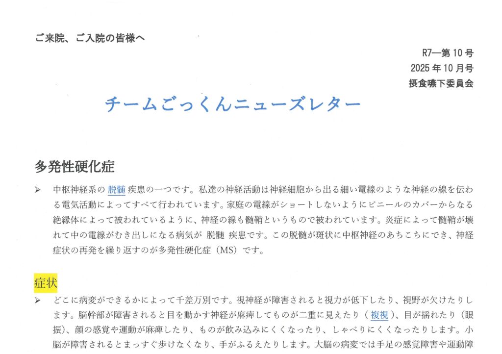 ニューズレター(チームごっくん10月号)